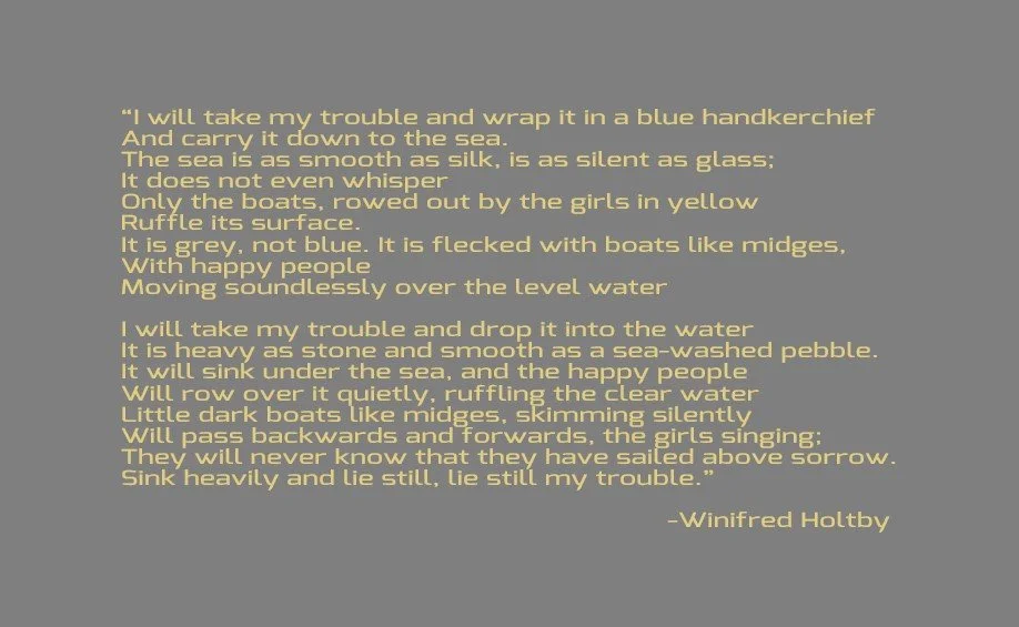 Winifred Holtby was an early 20th century feminist poet who wrote and edited numerous newspaper and famously, the feminist magazine Time & Tide. Her poem, Boats in the Bay puts forth, in very easily understood prose, a challenge we all face.